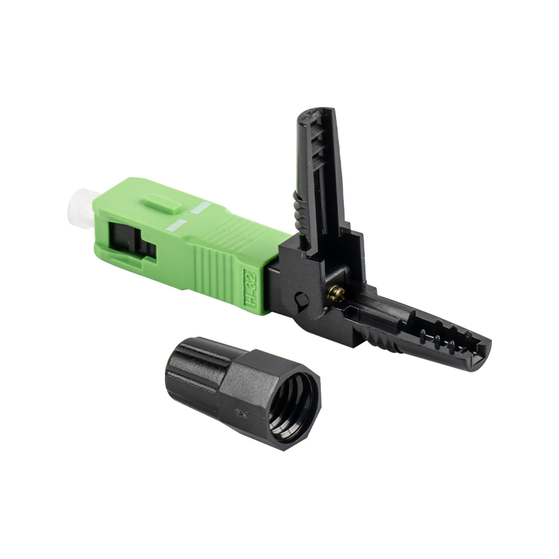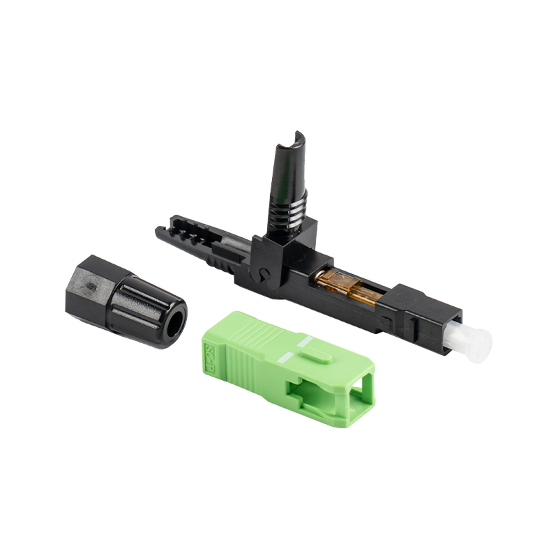 GSG-01-60 mm-APC vertikal fiberoptisk hurtigkobling muliggjør rask og verktøyfri fiberoptisk terminering på stedet. Ved å eliminere behovet for konvensjonelle sveise- eller limtrinn effektiviseres installasjonsprosedyren, noe som øker den generelle arbeidseffektiviteten.